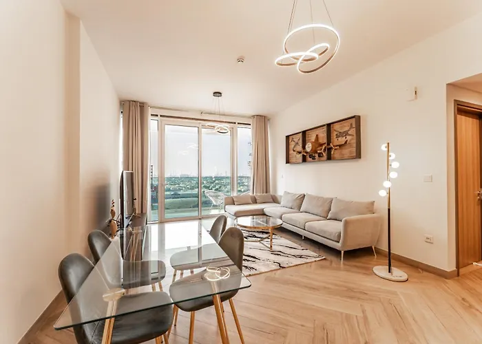 El Dubai Luxe Haven - World Record Residence se encuentra en el distrito Burj Dubái, cerca de la estación de metro Al Jafiliya, a unos 900 metros. El apartamento de 91 m^2 ofrece una piscina privada, además de instalaciones de barbacoa, zona de juegos y un jardín a 300 metros del Stargate Dubai.